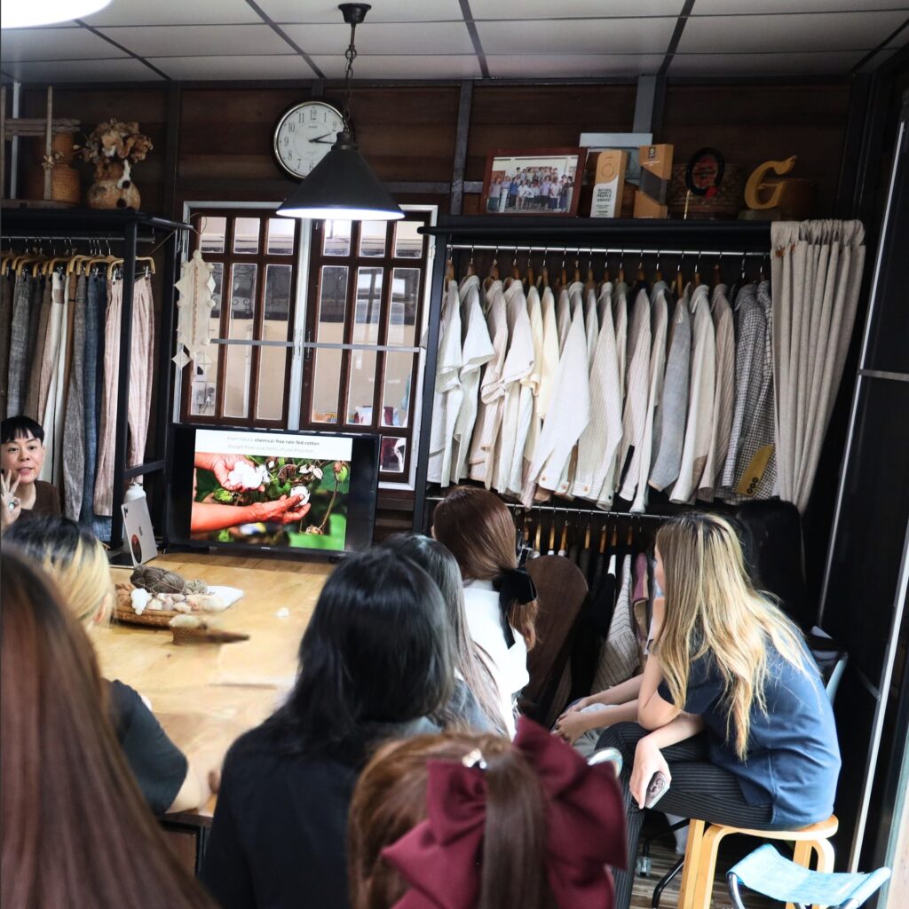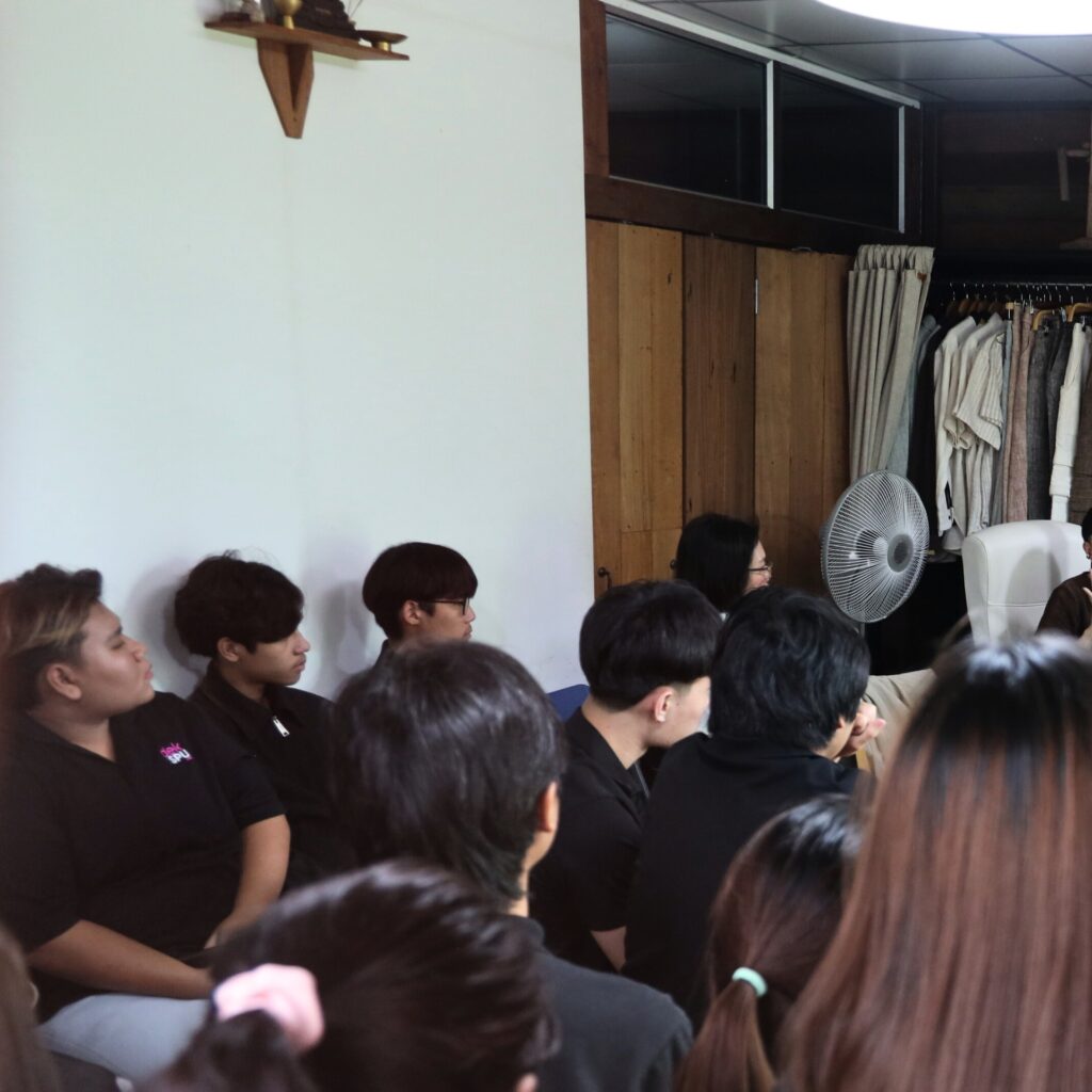 พี่ลูกแก้วได้ชวนน้องๆ พูดคุยในประเด็นสำคัญๆ ที่เชื่อมโยงแฟชั่นเข้ากับความยั่งยืนและการทำธุรกิจเพื่อสังคมอย่างแท้จริง