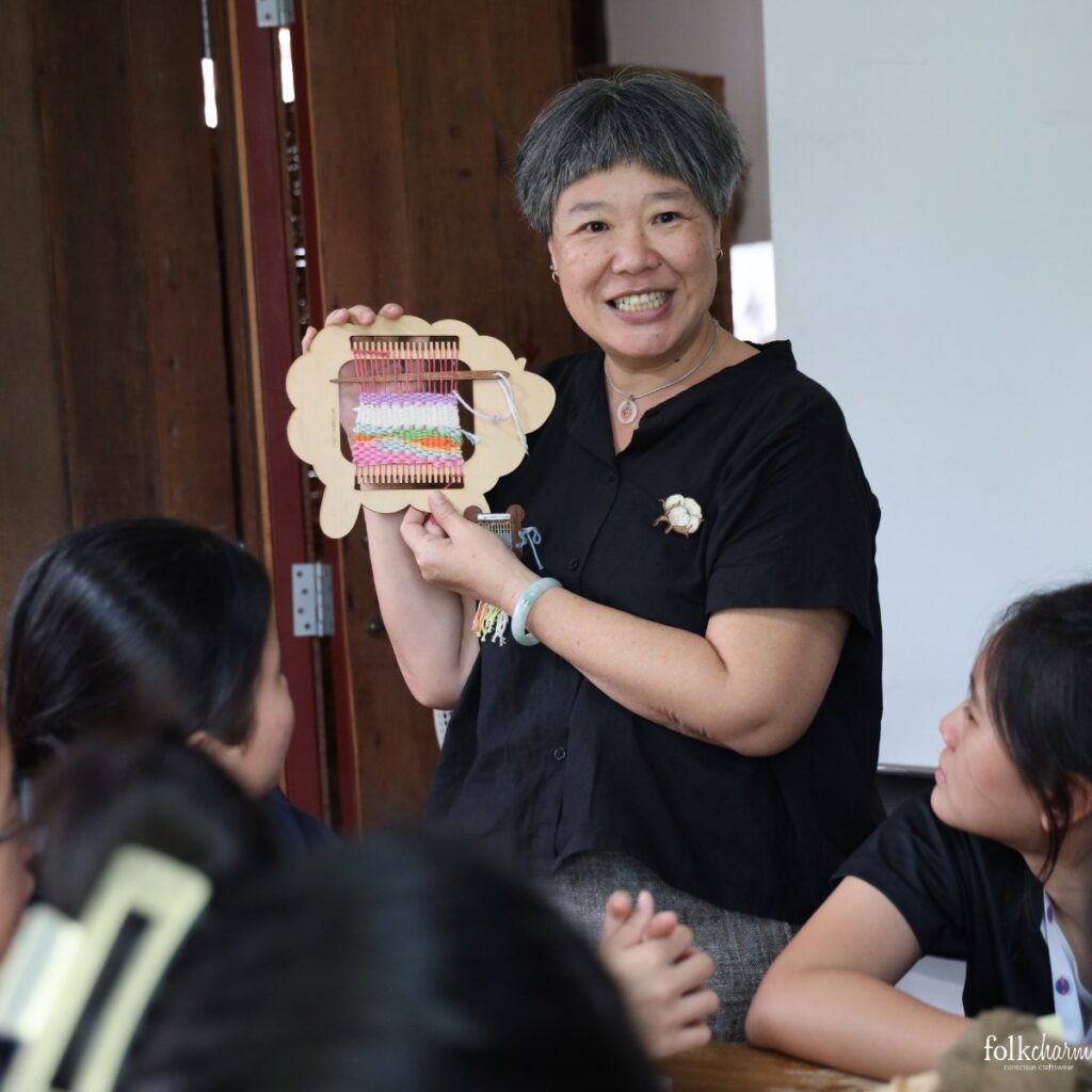 ในกิจกรรมกี่ทอผ้าจิ๋วกับพี่แพท (#141) น้อง ๆ เริ่มรู้ทันทีว่า “งานมือ” ไม่ได้ง่ายเลย ต้องใช้สมาธิ ความนิ่ง และการสังเกตรายละเอียด หลายคนทอผิด ลายไม่ตรง เส้นขาด แต่ก็พยายามแก้ไขจนสำเร็จทุกคน