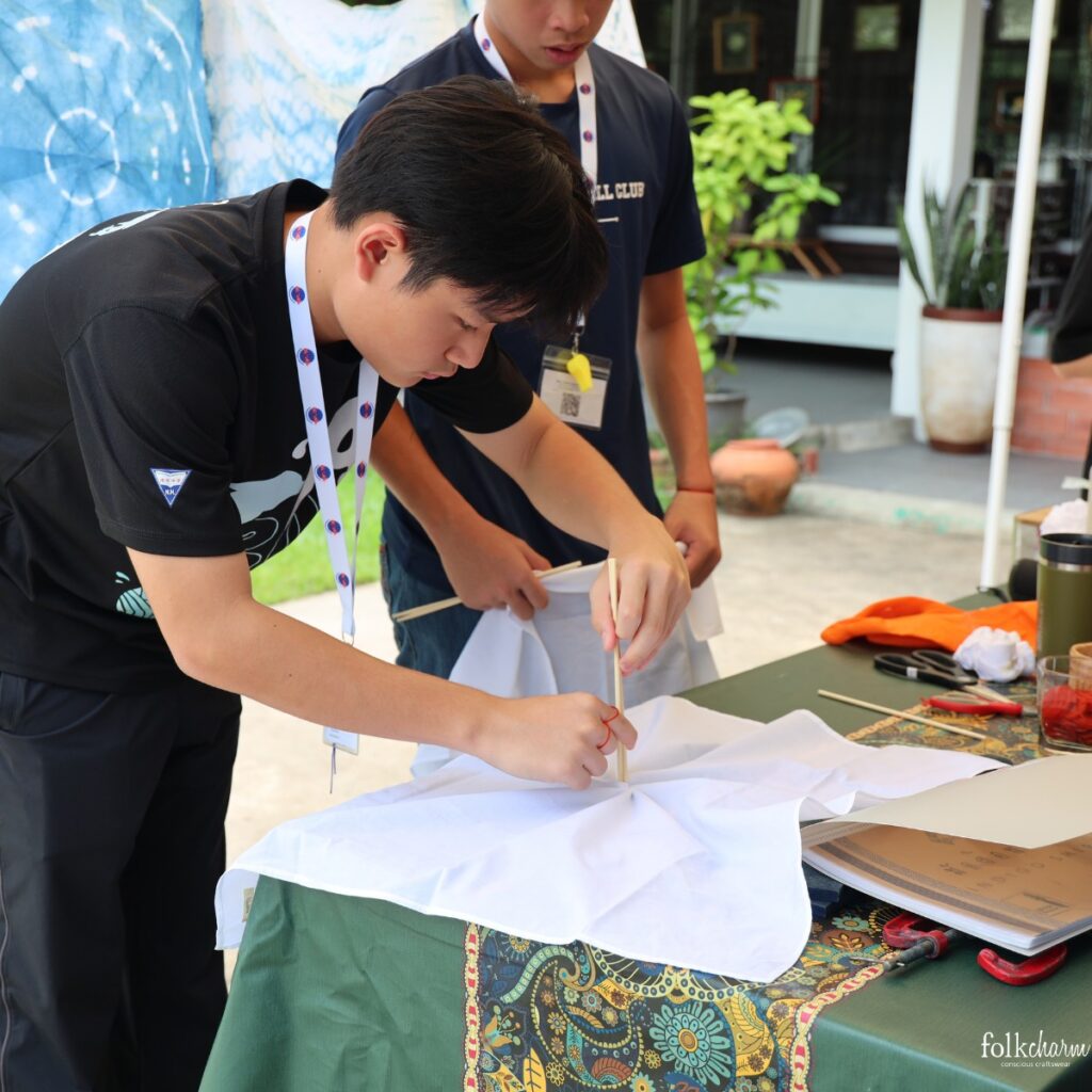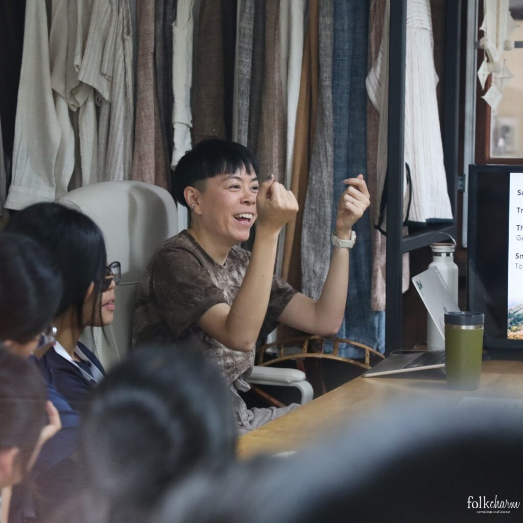 ก่อนเริ่มกิจกรรม น้อง ๆ ทั้ง 36 คนตั้งใจฟังเรื่อง Slow Fashion และถามคำถามลึกมากเกี่ยวกับการเริ่มต้นธุรกิจ ความกลัวตอนตั้งต้น ความท้อ และวิธีที่เราฝ่าความท้าทายใน 12 ปีที่ผ่านมา คำถามเหล่านี้สะท้อนว่าน้อง ๆ กังวลเรื่อง “เริ่มต้นอย่างไร ถ้ากลัวทำพลาด?”