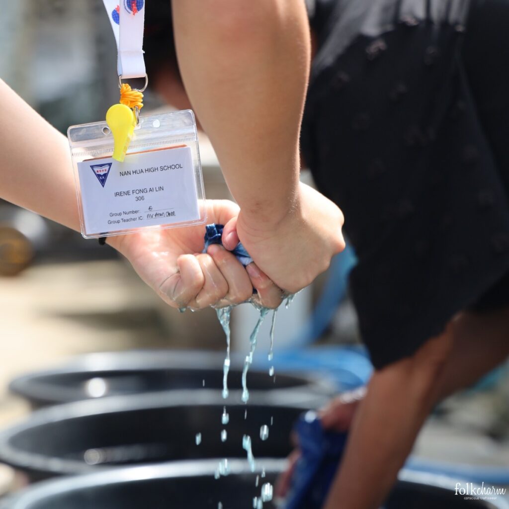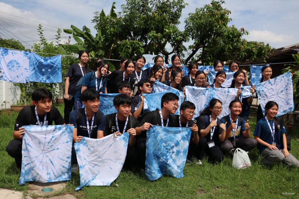 ใน Workshop มัดย้อมห้อมธรรมชาติ น้อง ๆ ได้เลือกแบบลวดลาย 4 สไตล์เพื่อทดลองความคิดสร้างสรรค์ แต่เมื่อหย่อนผ้าลงในหม้อห้อมจริง จังหวะที่คลี่ผ้าออกมา หลายคนพูดว่า