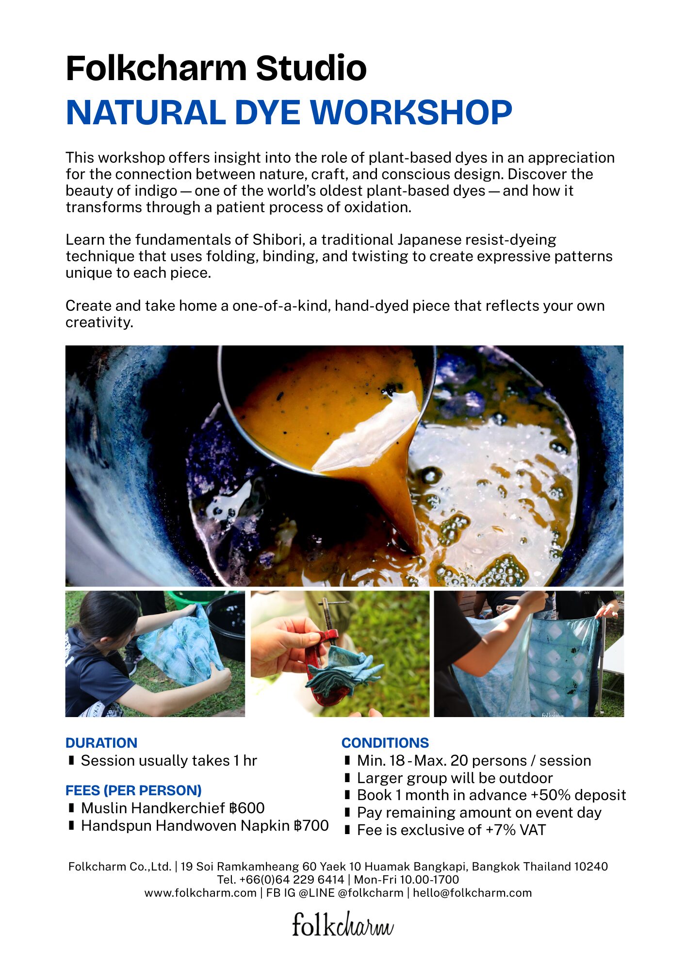 Experience the art of natural dyeing with indigo! Explore the Shibori tie-dye technique and unleash your creativity to design patterns that reflect your personal style.