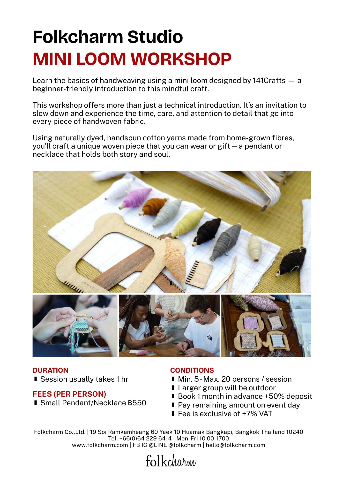Let's start by sharing the origins of Folkcharm, a brand dedicated to creating valuable handwoven fabrics in collaboration with local communities in Loei Province, Thailand. We aim to help everyone understand the processes and significance of fostering creativity and sustainability together with our communities, before diving into our fun and inspiring activities.